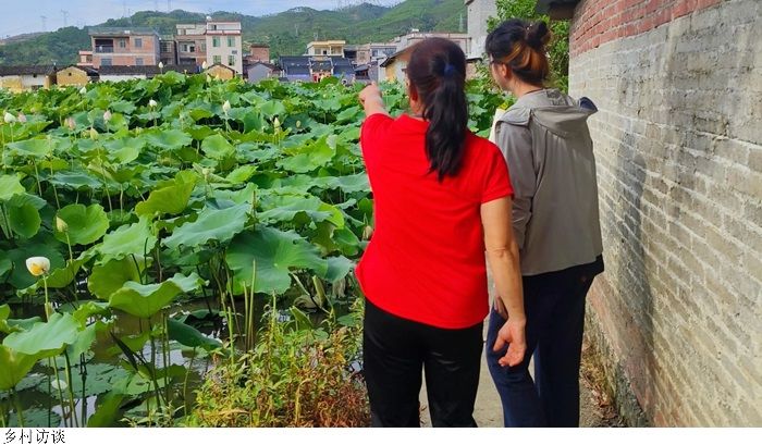 突击队成员去访谈了莲社村村委会成员进行了深入交流,了解了当地村民的生活状况和需求,特别是在乡村教育方面发现,有些班级已经展开了美术课,而有些班级尚未开始,这引起了我们的深思,认为需要进一步推动乡村教育的发展并参观了当地的特色建筑,还有对当地的农作物莲藕与水稻进行了了解,知道了目前莲社村季节作物为莲藕,以莲藕为主生活方式也是以自给自足居多。