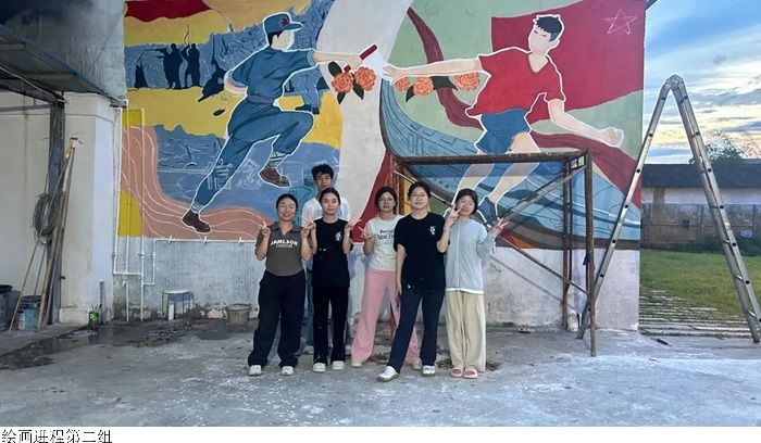2024年7月12号炙阳突击队吹响了集结的号角,为这次三下乡活动进行着最后的冲刺。同学们整装待发一鼓作气。迅速布局好自己要做的工作,洗笔、打水、调颜料。队员们有条不紊的进行着自己的工作,上午和指导老师郭艺文进行了总结,为我们三下乡之旅提供了方向和思路,进行了后续工作的总结和部署。同时镇帮扶队队长麦毅民主任也参与了讨论,进一步明确了接下来的任务和目标。