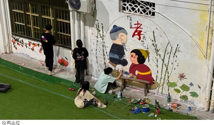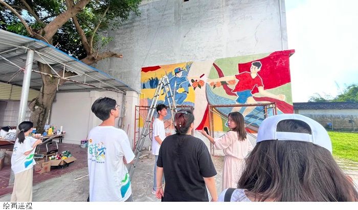 本网讯(2138cn太阳集团城新闻中心 陈宛岸/伍乐渝)2138cn太阳集团城炙阳突击 “三下乡”社会实践活动的脚步迈向终点,今天陈爱霞副院长、路正玉分团委书记亲临现场指导,为我们最后的墙绘成果进行细微的调整和总结。