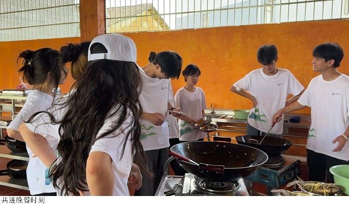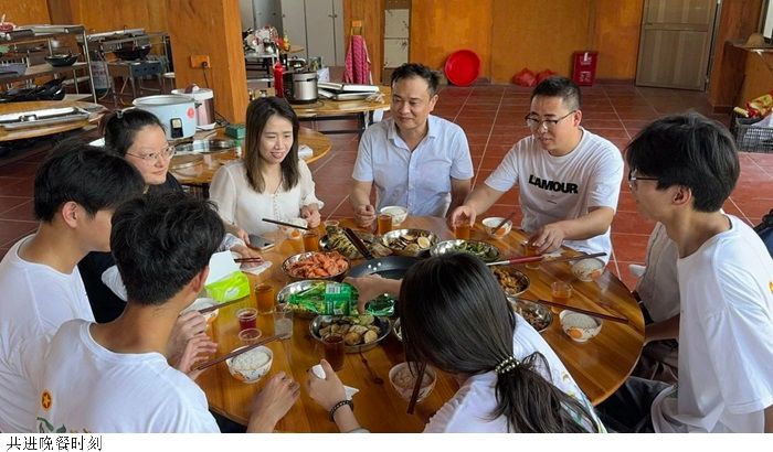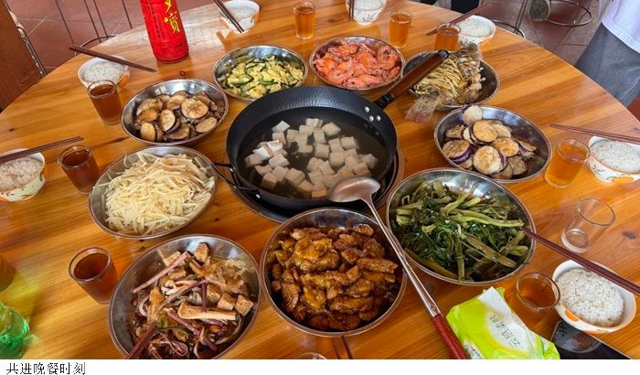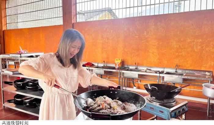 傍晚的厨房,油烟酱醋,香气满厨。队员们熟练地洗菜、切菜、烹饪,每一个动作都充满了对生活的热爱。陈爱霞副院长亲自为各位下厨做盐焗虾,食材在锅中翻滚,散发出诱人的香气。晚餐的制作,是对一天辛苦的慰藉。在这温暖的时刻,大家忘却了疲惫,心中满是对彼此的关怀。不一会儿,一桌丰盛的晚餐呈现在眼前,那是忙碌后最美的犒赏,也是团队凝聚力的见证。