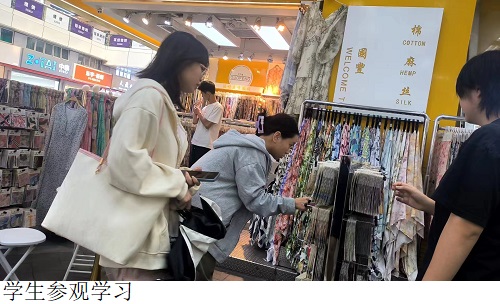 这次经历不仅使我们更加直观了解市场动态,直接接触市场,了解当前面料市场的最新趋势和发展方向。并且老师们也指导我们观察不同种类面料的销售状况,了解哪些面料更受欢迎或具有潜在的市场需求,鼓励我们探索国际轻纺城内丰富多样的面料品种,包括但不限于天然纤维、合成纤维及其混纺产品。