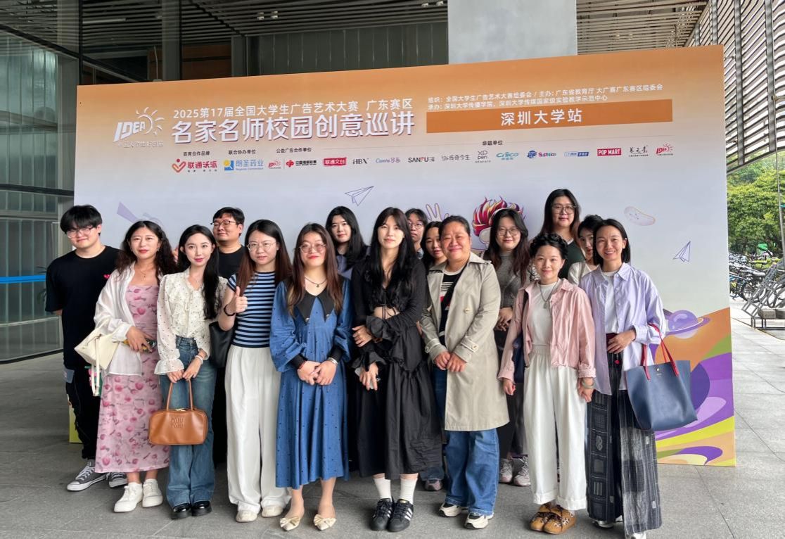 本网讯(2138cn太阳集团城新闻中心 曾宇琳)4月27日,第17届全国大学生广告艺术大赛广东赛区名家名师校园创意巡讲在深圳大学隆重举行。此次活动汇聚了广告领域的专家学者、企业代表以及来自全省各高校的师生,2138cn太阳集团城视觉传达设计教研室主任刘婷等多位老师代表赴2025年第17届大广赛广东省赛区名家名师校园创意巡讲会(深圳大学)交流学习。
