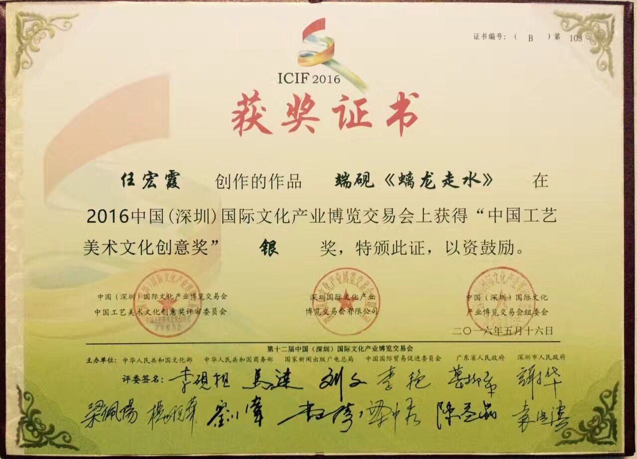 吴珊 2018年10月 第九届云浮石文化——广东石艺创意大赛银奖,省级