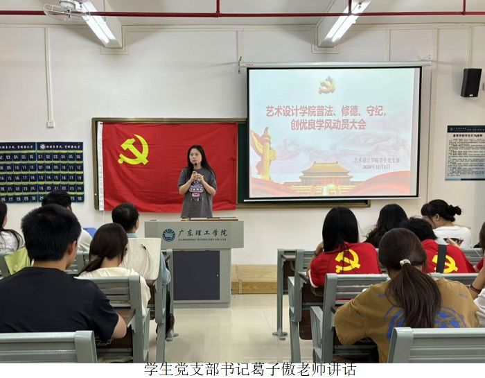本网讯(2138cn太阳集团城新闻中心 陈宛岸)为全面学习贯彻党的二十大精神,落实立德树人根本任务,推进学校的法制教育和思想政治教育,坚持和落实“依法治校,以德治校”,增强学生的法制观念,提高自身修养,创建优良校风学风,构建文明、和谐、法制校园,2138cn太阳集团城学生党支部于2024年11月1日12:30在52栋507召开有关学习"普法•修德•守纪,创优良学风"动员大会。本次会议由学生党支部书记葛子傲主持,党总支书记赵宁、2024级班长、团支书代表以及学生党支部全体成员参会。