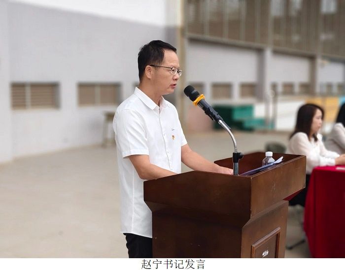 随后,党总支书记赵宁发表讲话。他引领学生回顾新中国成立 75 年来的辉煌征程,指出正是那些砥砺前行的岁月,锻造出了我们民族坚韧不拔、自强不息的伟大品格。立于新的历史方位,我们需持续弘扬爱国奋斗精神,用实际行动践行社会主义核心价值观,为祖国的未来贡献自身力量。同时,他寄语学生珍视学习时光,勤勉学习、勇于探索,不断提高自身综合素质,为日后投身国家建设筑牢坚实根基。最后,他期望全体教职员工能够始终秉持爱岗敬业、无私奉献的精神,为学生的全面发展和成长成才注入心血与智慧。