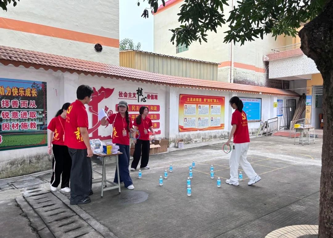 趣味活动如火如荼开展,欢声笑语洋溢校园。党知识快问快答,让孩子们在抢答中厚植爱国情怀;套圈圈、吹乒乓球充满竞技乐趣,展现拼搏精神;夹气球游戏里,两两协作的孩子们默契配合,深刻体会团结合作的意义 。