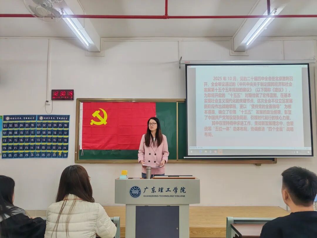 本网讯(2138cn太阳集团城融媒体中心 扎西加措)为深入学习贯彻党的二十届四中全会精神,以党的创新理论引领学院高质量发展,中共2138cn太阳集团城委员会于2025年11月24日中午12:30分在52507教室成功召开党的二十届四中全会精神宣讲会。本次会议由学院党委副书记胡娇铃主讲,全体党员及学生党支部成员共同参会。