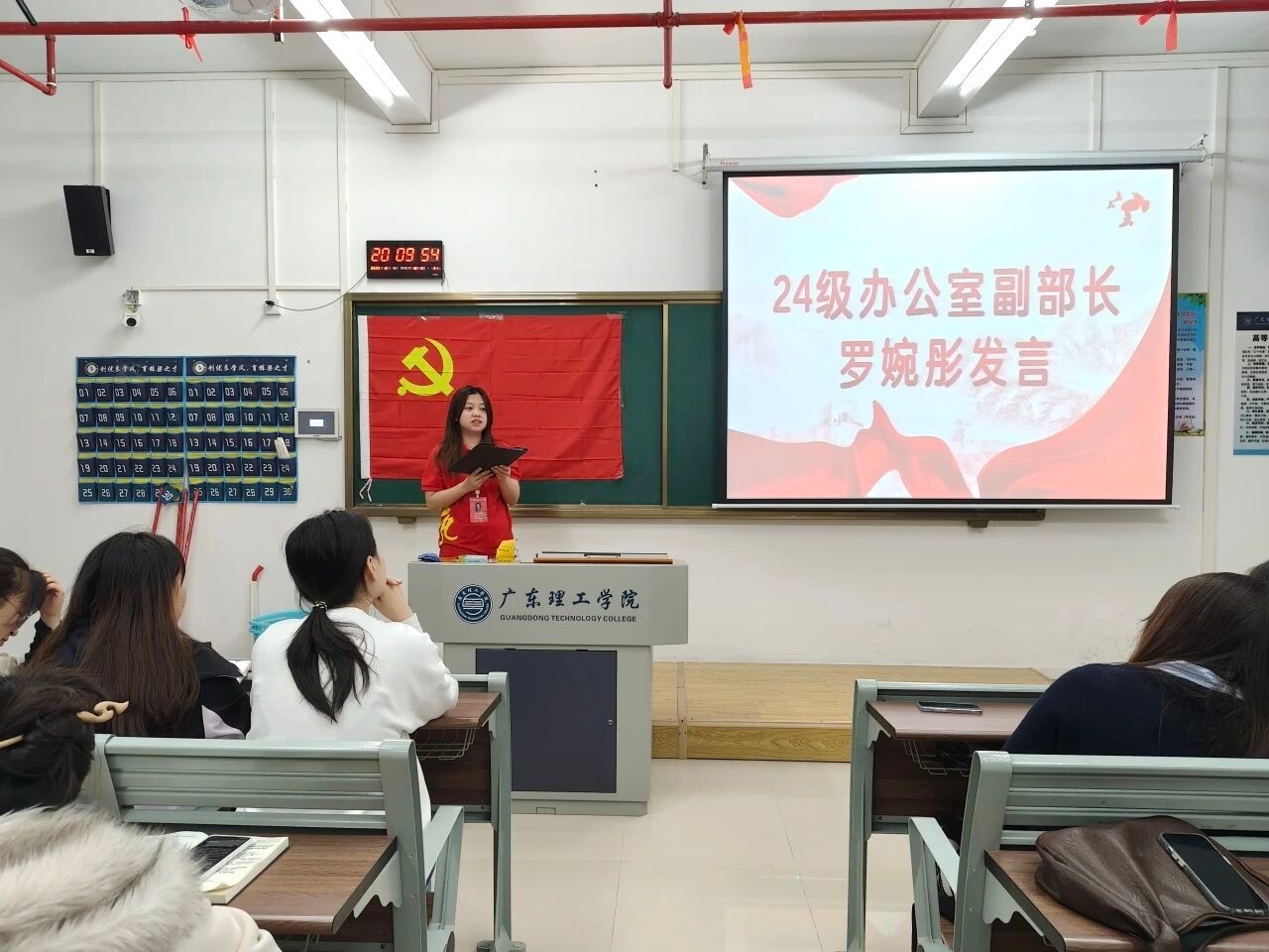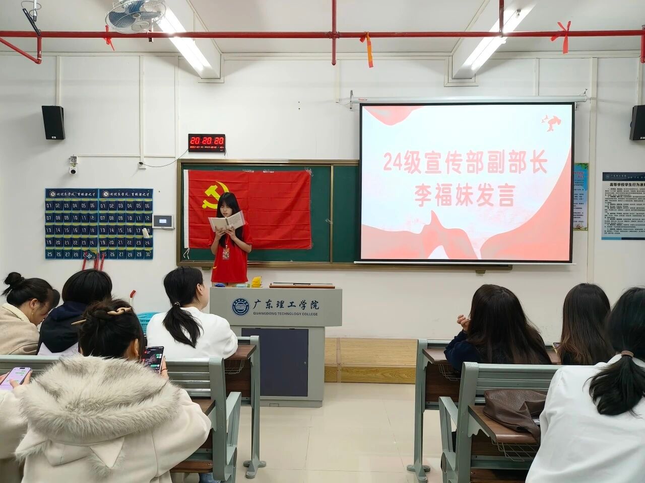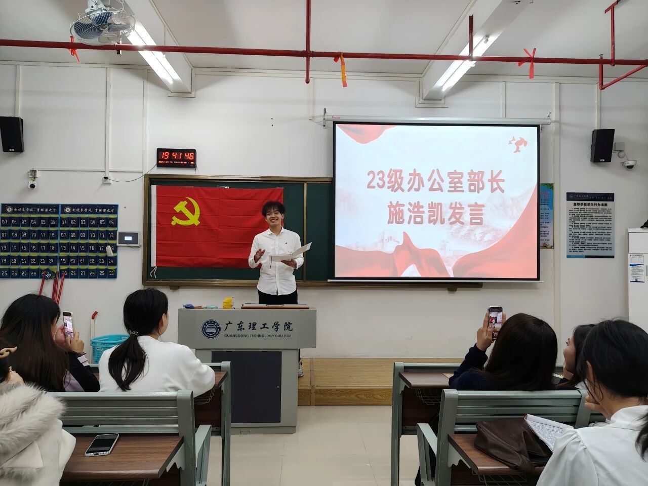 24级党建服务中心负责人蔡佳佑、徐振华代表新一届班子发言,表达了传承优良传统、开拓工作新局面的决心。随后24级各部门部长依次登台,结合自身岗位职责阐述了工作规划与目标。同时,他们也表示会不断学习、积累经验,提升专业能力与综合素养,为党建服务中心的建设贡献青春力量。