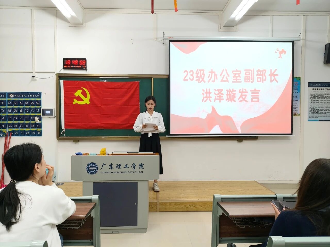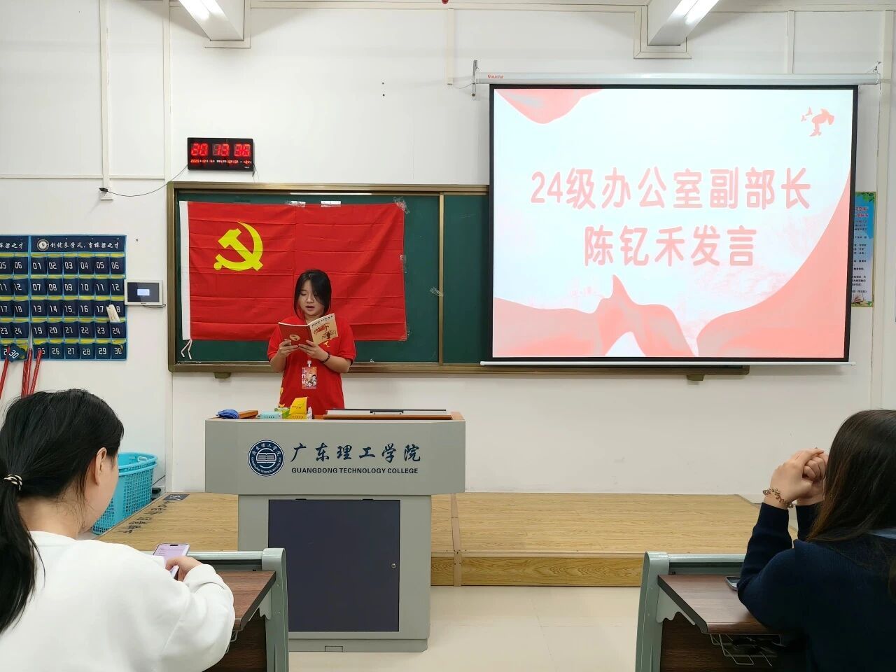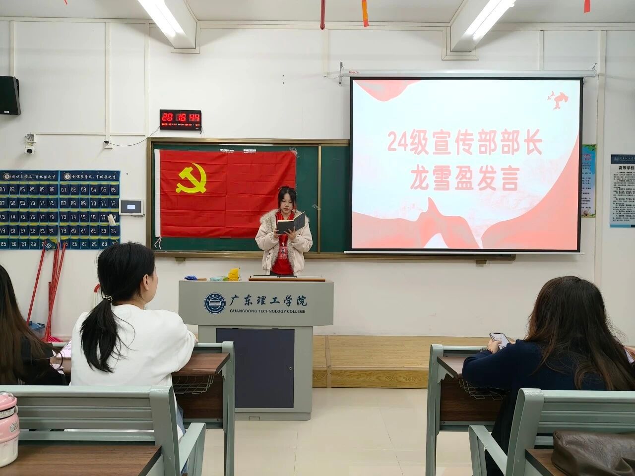 24级党建服务中心负责人蔡佳佑、徐振华代表新一届班子发言,表达了传承优良传统、开拓工作新局面的决心。随后24级各部门部长依次登台,结合自身岗位职责阐述了工作规划与目标。同时,他们也表示会不断学习、积累经验,提升专业能力与综合素养,为党建服务中心的建设贡献青春力量。