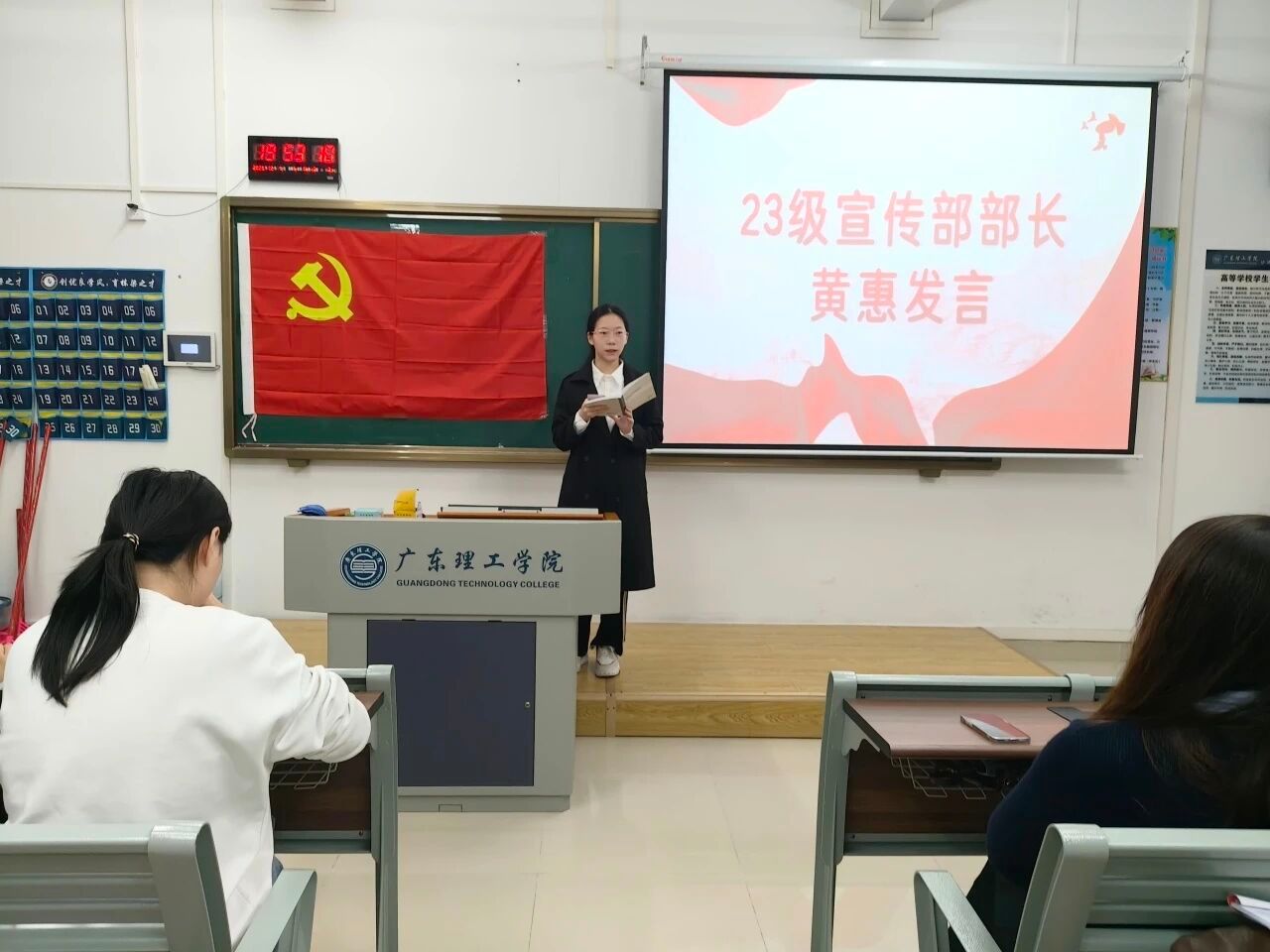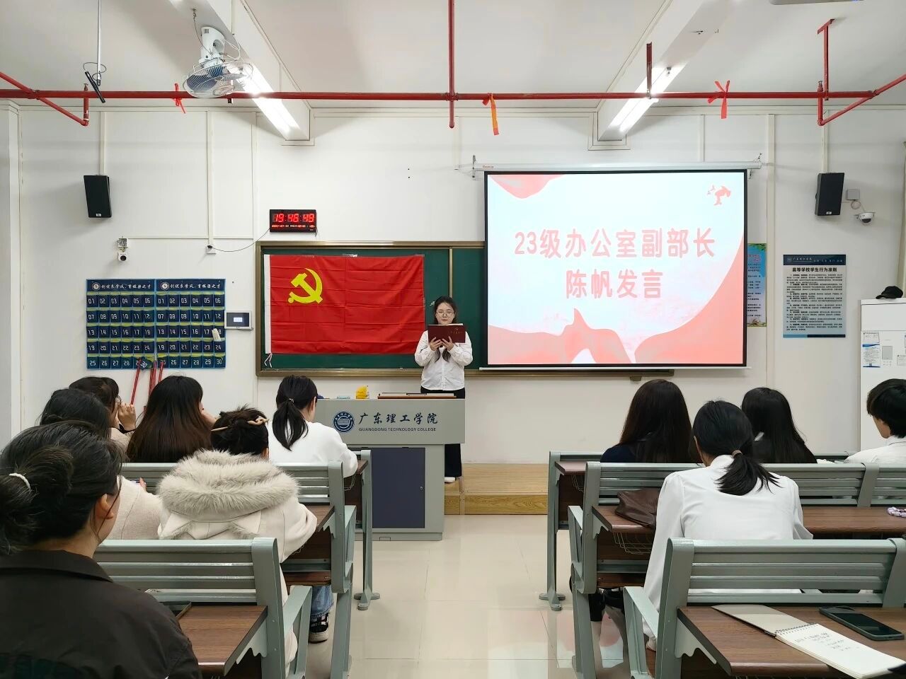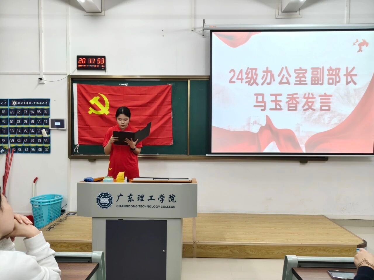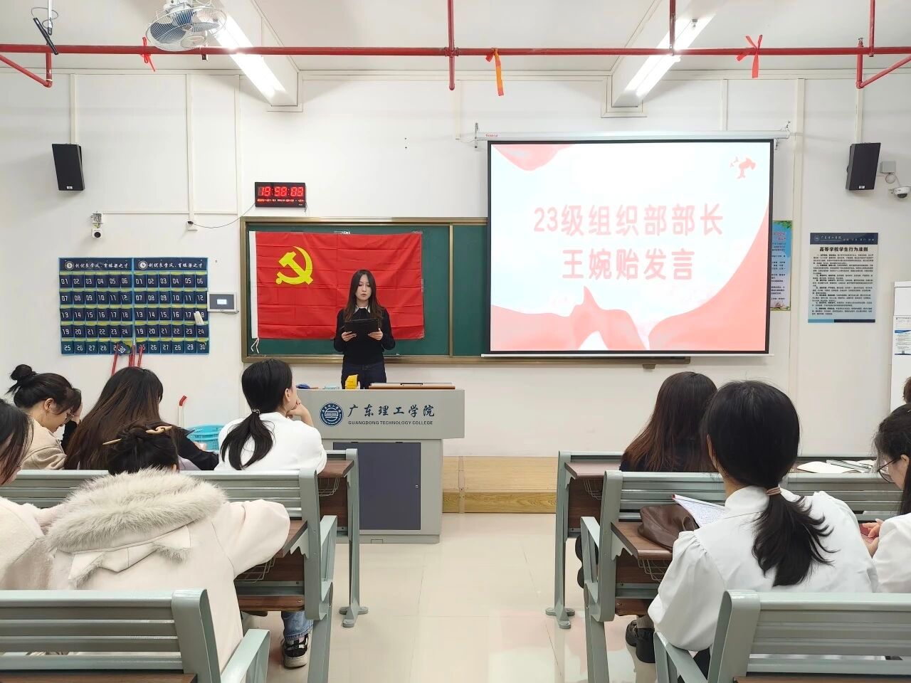 23级负责人、23级各部长依次登台发言。他们结合自身岗位经历,分享了在党建服务中心工作中的成长与感悟,既回顾了过去一年里与团队并肩作战、攻坚克难的点滴,也表达了对老师悉心指导的感恩,以及对党建服务中心未来发展的美好期许。他们的分享既展现了23级干部的责任与担当,也让在场的24级新任干部深受启发。同时也期望25级成员保持求知与自我提升的追求,踊跃参与活动,提升专业技能与综合素质。