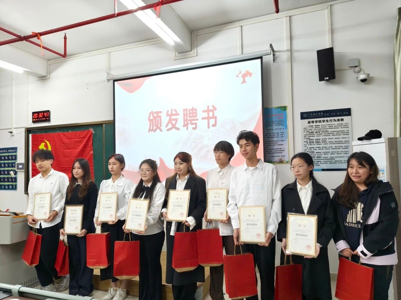 为表彰先进、树立典型,大会对党建服务中心内表现突出的个人,进行了隆重的表彰。现场依次颁发了23级负责人与各部门部长的聘书、优秀党务工作助理、优秀党建工作助理、先进个人等多个奖项,获奖代表依次登台接受表彰。每一份荣誉的背后,都是获奖者在党建服务中心工作中默默的付出与坚守,他们的榜样力量也将激励着全体成员奋勇争先、砥砺前行。 每一位获奖者的付出都被看见,他们的榜样力量也将激励着全体成员奋勇争先、砥砺前行。