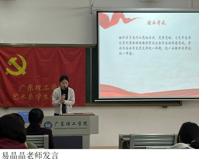 接着易晶晶老师介绍了本次入党积极分子的培训背景、培训目的、培训主题、培训安排及要求等。她要求学员们要结合本人思想实际开展学习,自觉遵守纪律,不迟到、不早退、不请假、不旷课、不缺课。同时,希望学员们在今后的学习、生活中要时刻督促自己,以党员的标准严格要求自己,争做学院和班级的领头人,在行动上脚踏实地,努力提高自身,争取早日入党,成为一名光荣的共产党员。