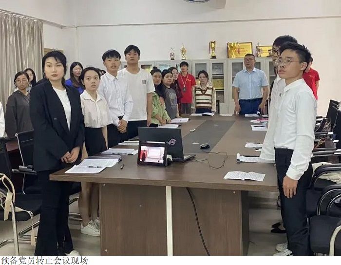 会议伊始,全体参会人员起立,奏唱国歌。学生党支部书记易晶晶宣读本次转正的预备党员名单。十二名预备党员分别宣读了自己的《转正申请书》,汇报了自己预备期间在学习、工作、思想、生活上的情况,他们明确表达了自己入党的决心和愿望,一定要坚定党的信念,坚持党的领导,严格以一名优秀共产党员的标准来要求自己。汇报完毕后,入党介绍人花仕旺、易晶晶、路正玉、余丽嘉、吴云、郭艺文等同志就预备党员考察期间在政治思想和工作行为等方面提出了自己的有关意见和看法。