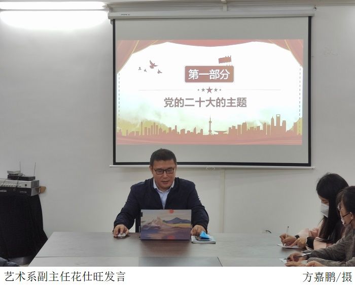 最后,学校党委副书记张宗珊总结,学习宣传贯彻党的二十大精神,是学校当前和今后一个时期的首要政治任务和全部工作的重心,我们要提升理论素养,增强理想信念。他相信艺术系党员老师通过此次会议对于党的二十大精神都有了更深入的理解。