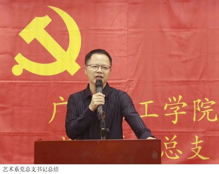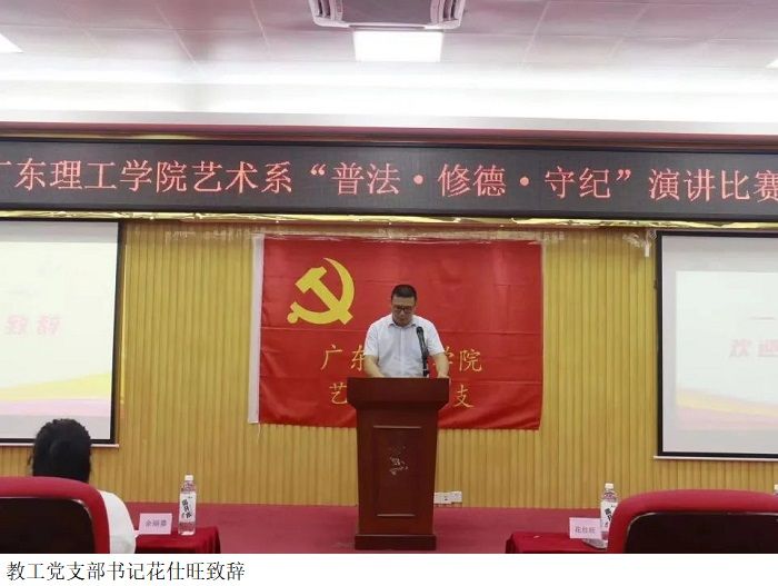 艺术系教工党支部书记花仕旺致辞,他表示:学风建设工作一直是我校重点关注的问题,通过此次活动可以让同学们更进一步地提高自身守法意识,提高自身素质和科学文化素养;同时也为构建和谐校园奠定了坚实基础。严格要求学生遵守学校各项规章制度,把遵规守纪落实到日常的行为举止当中,为创建优良学风而努力奋斗。