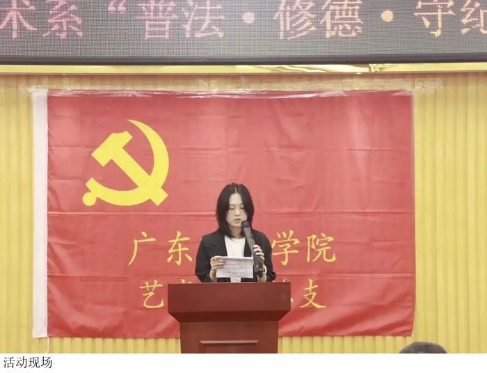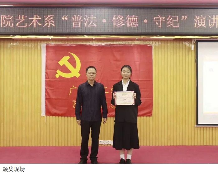 本网讯(艺术系新闻中心 邹宜含/李安琪)为进一步全面贯彻党的教育方针,落实立德树人根本任务,推进学校的法治教育和思想政治教育,坚持落实“依法治校、以德治校”的教育理念。艺术系学生党支部于2022年11月11日下午三点,在42栋101隆重举行了“普法·修德·守纪,创优良学风”演讲比赛总决赛。