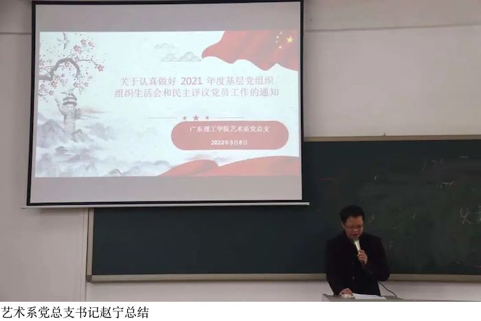 会议伊始,赵宁书记提出全体党员老师必须严格执行党的组织生活制度,深入学习贯彻习近平新时代中国特色社会主义思想;学习贯彻党的十九届六中全会精神和习近平总书记对广东系列讲话、重要指示批示精神,贯彻落实市第十三次党代会精神为主题等,随后,赵宁书记组织引导艺术系全体党员教师深刻认识“两个确立”的决定性意义、大力弘扬伟大建党精神,坚持自我革命,进一步增强“四个意识”、坚定“四个自信”、做到“两个维护”,把思想和行动统一到党中央的重大决策部署上来。