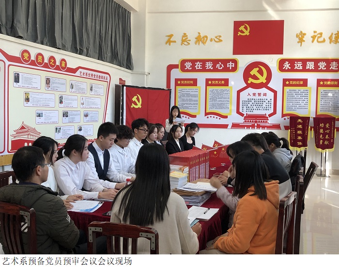 本网讯(艺术系宣传部 谢若轻)为了更好地培养艺术系优秀党员,艺术系于12月2日下午在党员活动室,召开关于第二十七期发展对象转为预备党员的预审会议。会议有党总支书记赵宁、组织部莫婷老师、学生党支部书记易晶晶,分团委书记路正玉、学工部长吴云、奖助贷负责人张海玲、考证联系人余丽嘉老师参会。