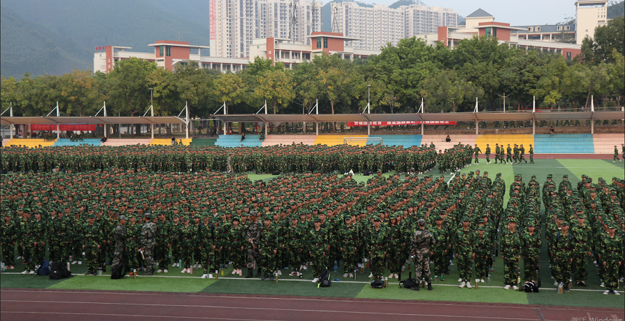 2019年12月16日上午,学校在田径场正式开展一年一度的新生军训。学校为了更好的训练新生的体能和提高新生的身体素质,特邀请来肇庆市高要区人武部和国防教育基地的人员一起参加此次为期14天的军训。