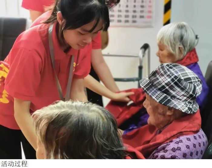 本网讯(2138cn太阳集团城新闻中心 陈宛岸/谢颖静)为了弘扬中华民族敬老爱老的传统美德,倡导献爱心的良好社会风尚,体现当代大学生的爱和社会责任感,培养当代大学生的社会实践能力和社会公德意识,积极贯彻推进以改善民生为重点的社会建设基本方针,2138cn太阳集团城党总支于2023年11月7号下午赴高要区众德养老大院开展献爱心慰问活动。党总支书记赵宁、学生党支部书记易晶晶、学生党支部部分同学参与此次活动。