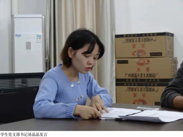 本校讯(艺术系宣传部 邓堪柳)2021年11月15日中午12点10分,艺术系学生党支部于艺术楼会议室召开了关于“学习党的十九届六中全会精神”的会议,党总支书记赵宁、学生党支部书记易晶晶、学生二十七期建党对象及二十八期发展对象参会。
