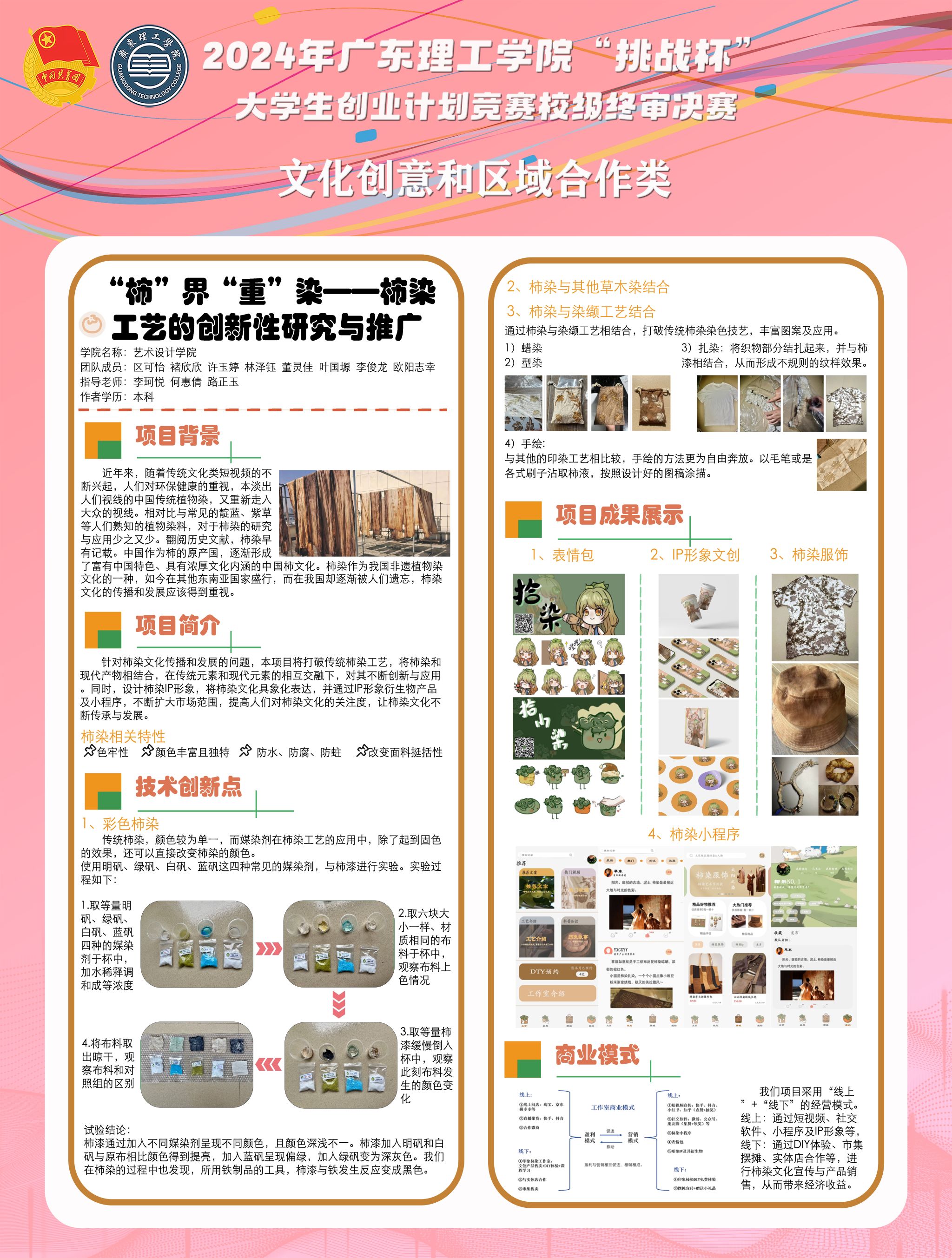 区可怡、褚欣欣、林泽钰、许玉婷、董灵佳、叶国塬、李俊龙、欧阳志幸-省级铜奖-《“柿”界重“染”——柿染工艺的创新性研究与推广》-李珂悦、何惠倩、路正玉