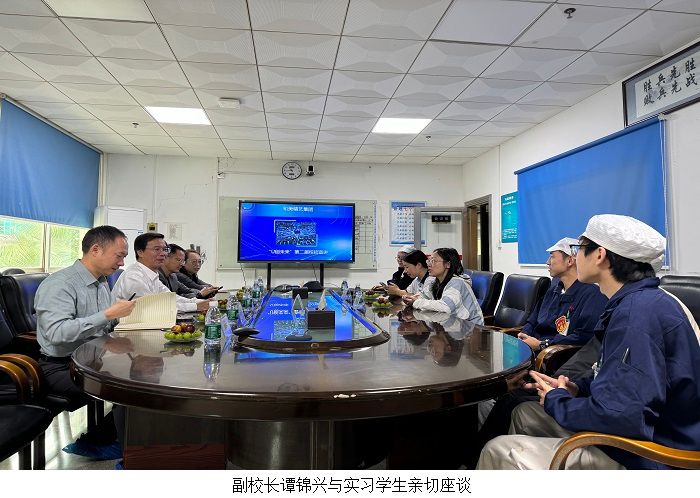 随后,谭锦兴副校长与我校在岗实习学生亲切交流,询问他们在薪酬待遇、工作适应及生活保障等方面的情况,并鼓励学生珍惜实践机会、锤炼专业技能,企业负责人亦肯定了实习学生的学习能力与敬业态度。