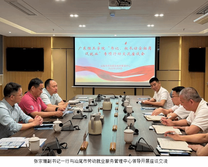 5月8日上午,张宗珊副书记一行抵达汕尾市劳动就业服务管理中心,双方围绕高校人才培养制度、毕业生就业政策、地方产业发展需求以及人才供给等话题展开深入探讨、双方表示将通过建立紧密的政校合作关系,致力于为汕尾地方经济发展输送更多高素质专业人才,同时也为学生提供优质的实习岗位、就业岗位选择。