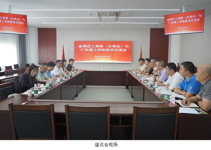 座谈会上,金湾区工商联负责人对胡海建一行到访表示热烈欢迎,并详细介绍了区域产业布局与商会服务网络,强调金湾区作为珠海市“产业第一”主阵地,已形成以新能源、高端装备制造为核心的千亿级产业集群,发展潜力大,人才需求旺,希望与学校强化人才供需对接合作。胡海建阐释了学校“应用型特色鲜明、工科优势明显”的办学定位,重点介绍了学校在人工智能、工业互联网等领域的学科优势与科研成果。他表示,学院将依托金湾区“湾融通”公共服务平台,动态对接区域企业岗位需求,推动人才培养方案与行业技术标准“同频共振”。